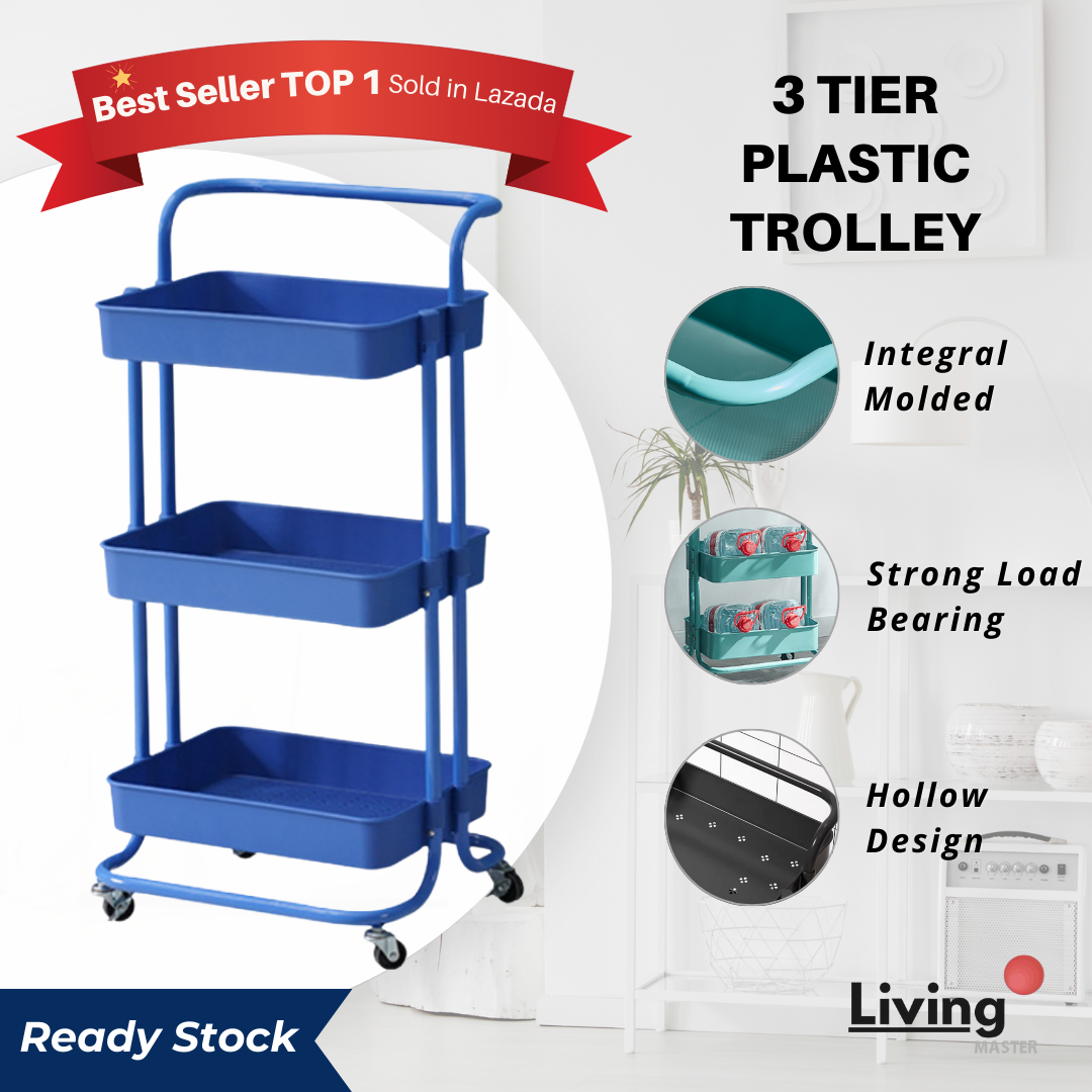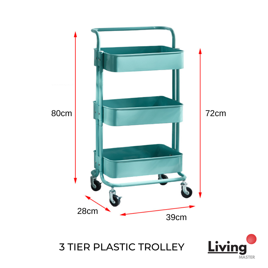 Livingmaster Trolley with Wheels Kitchen/ Office Storage Rack Storage Trolley Carbon Steel Handle