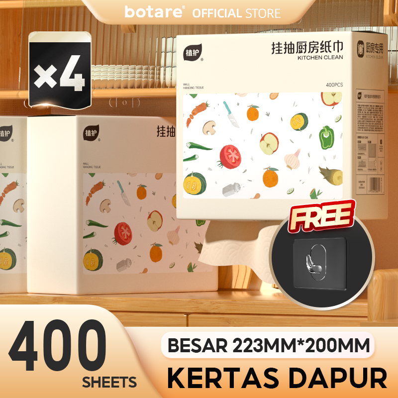 【4PCS】Botare Kitchen tissue paper towel hanging removable oil-absorbent tissue wall-mounted tissue multi-purpose food-grade kitchen wipes 400 sheets 223mm*200mm