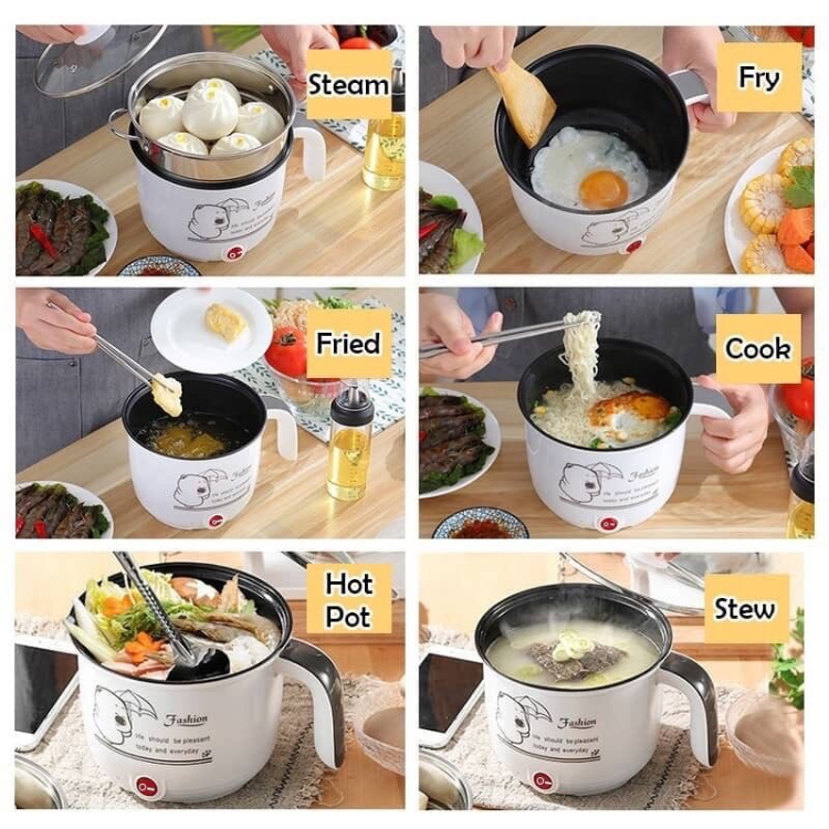 Multi-functional: Cooking, noodles, rice, boiling water, reheating food, mini steamboat , boiling egg, soup , fry, steam and more.