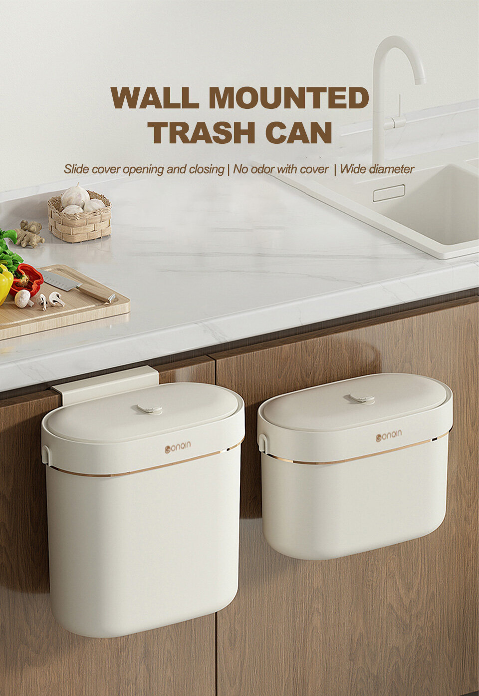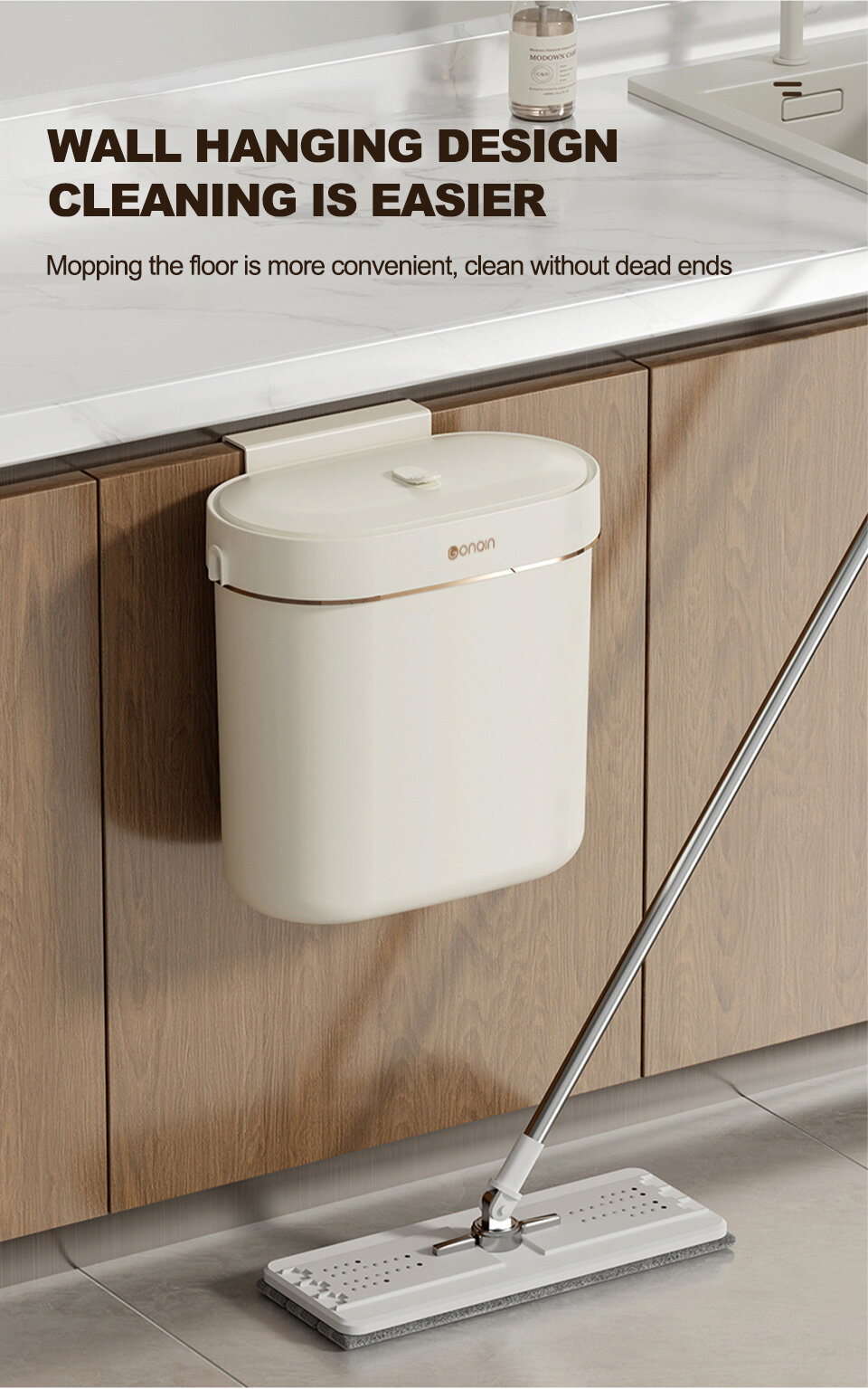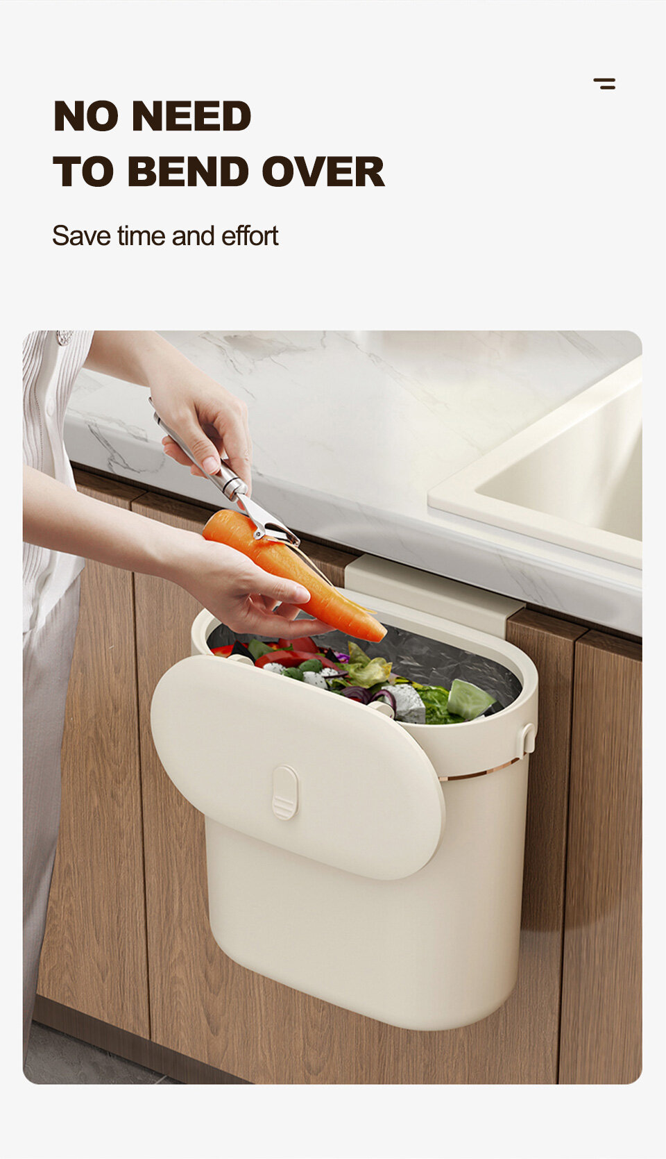 1. Wall hanging design: Food waste can be thrown without bending over, saving time and effort.