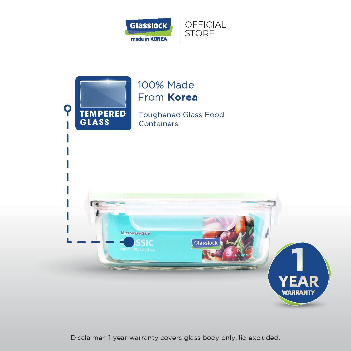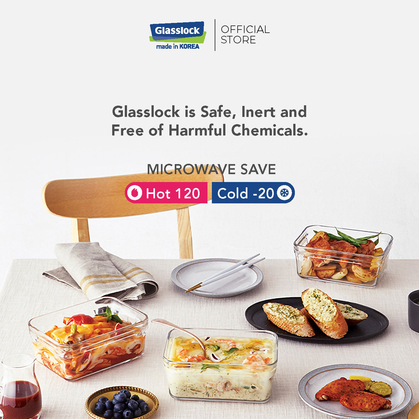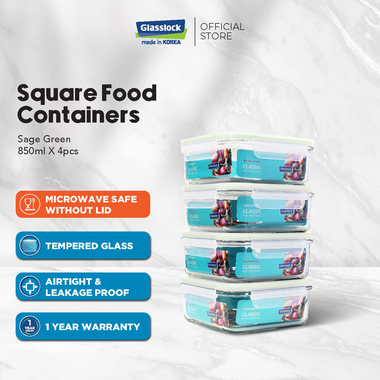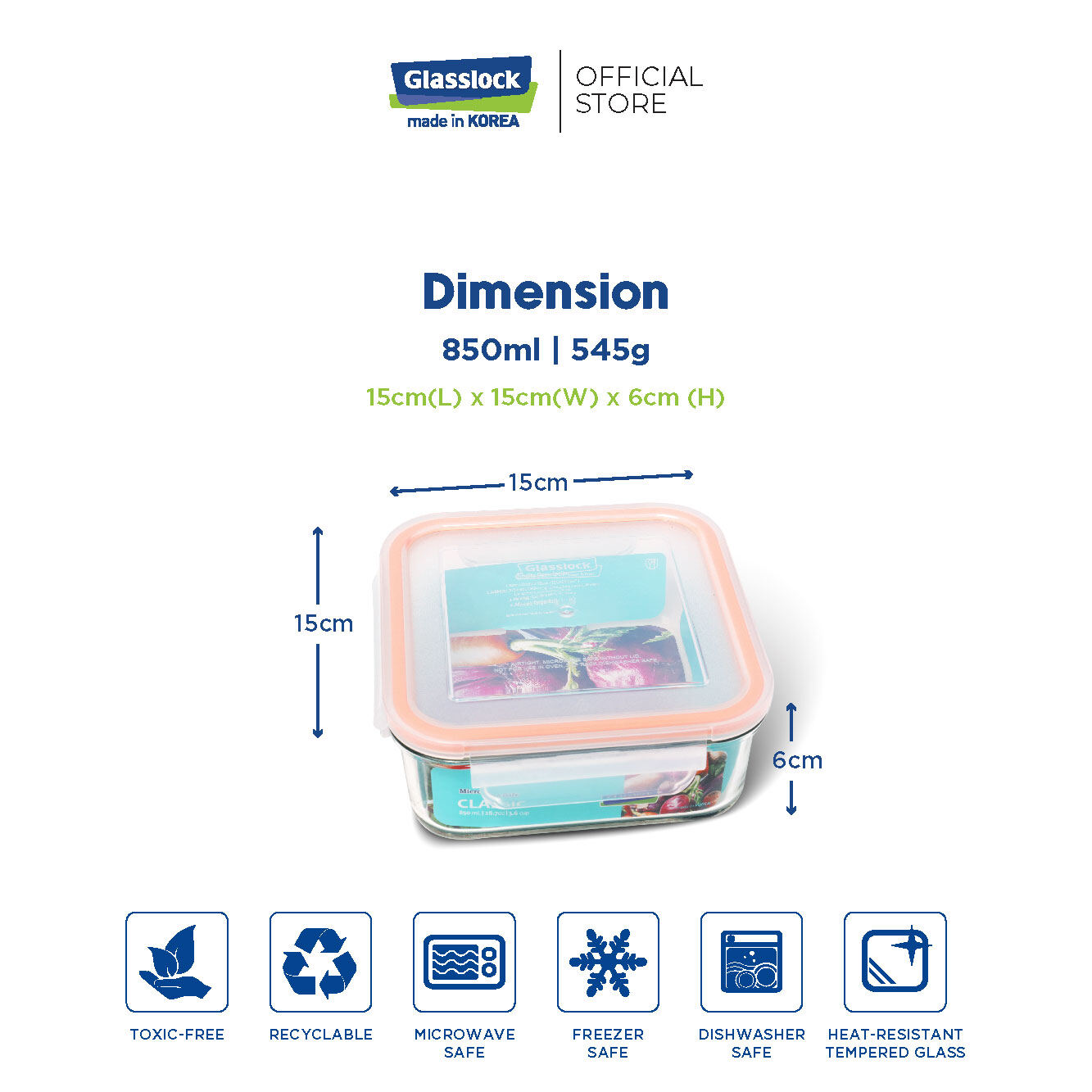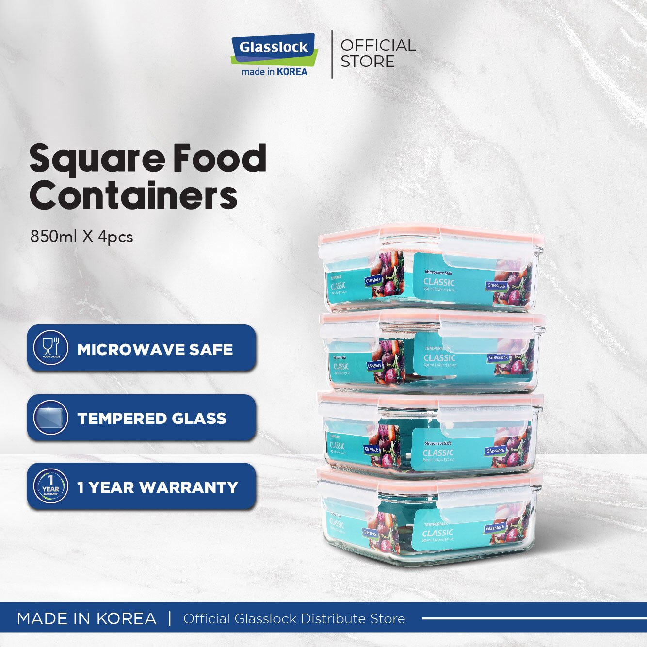 GLASSLOCK FOOD CONTAINER Square (850ml 4pcs) GL3550-MANGO